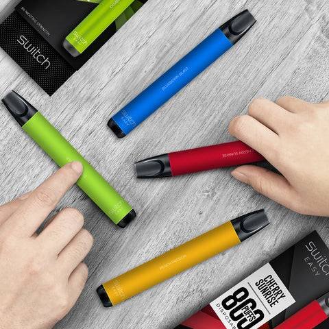 Switch Easy is a disposable, advanced nicotine delivery system containing 800 puffs which replicate the satisfaction that is achieved when smoking a cigarette. With no fuss of detachable pods, the Switch Easy comes equipped with an in-built pod containing Switch e-liquid: a formulation of 4 ingredients – Propylene glycol, Glycerol, Flavor and Nicotine. The premium salt nicotine used is 5% by volume/pod.